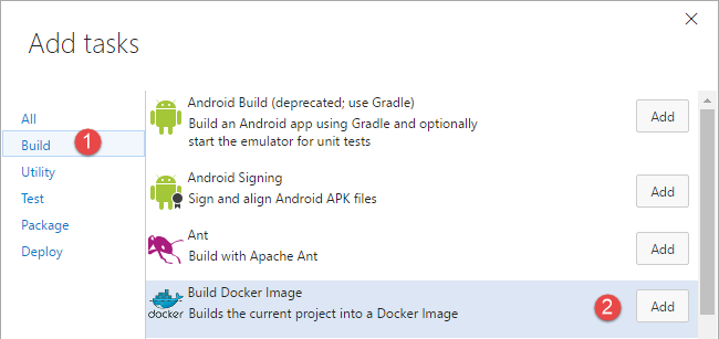 - Docker Tools for Visual Studio Team System, which adds some Docker Build steps