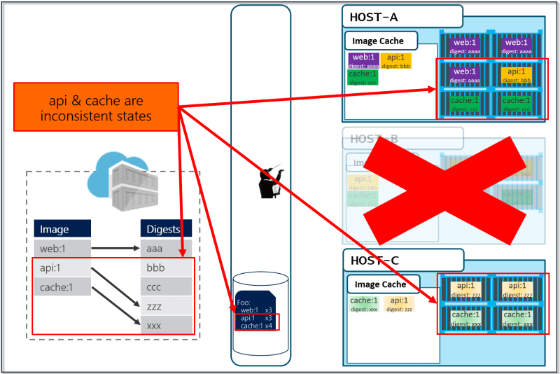 For the purposes of tagging, I’ll stay focused on the other aspect; we must assume a container host may fail at any point. Orchestrators will re-provision the failed node, requiring a new docker pull. Which begs the question: when you have a collection of containers running the same workload, do you want them to all run the same workload, or some of them have the last version, while new nodes have a newer version?
