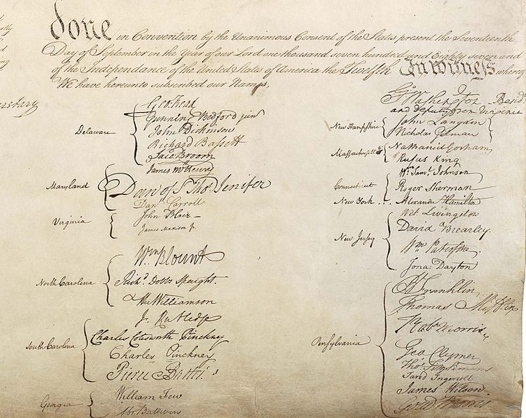 A collection of attached signatures would imply all the parties created the artifact, such as the United States Consitution.